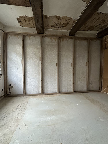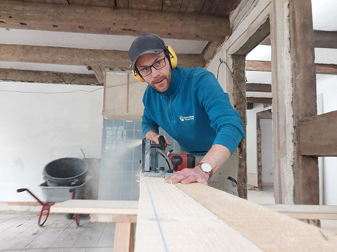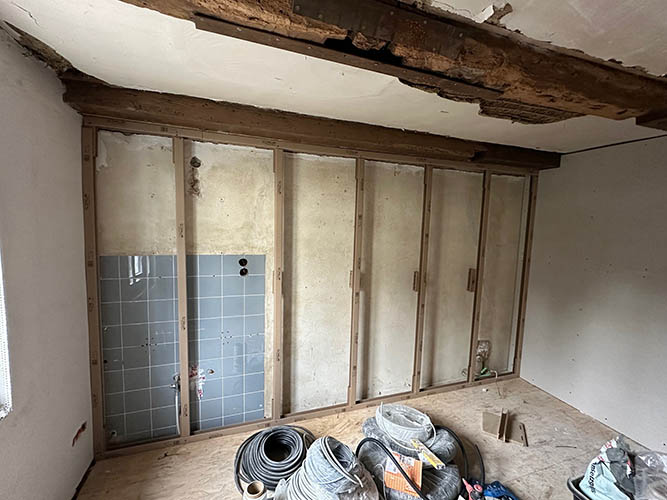 Das vorgestellte Sanierungsprojekt betrifft ein rund 300 Jahre altes Mehrfamilienhaus im Sauerland. Die baulichen Gegebenheiten spiegeln das Alter des Gebäudes wider: Schiefe Wände, ungerade Ecken und historische Substanz machen eine Sanierung mit Standardlösungen unmöglich. Gefragt sind individuelle, flexible Systeme, die sich an die Unebenheiten und Besonderheiten eines Altbaus anpassen lassen.