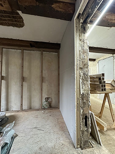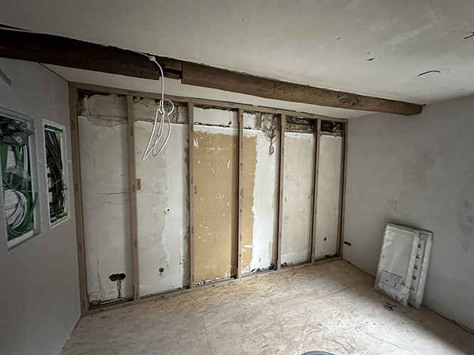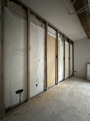In der ersten Etage des Gebäudes, die zuletzt im Jahr 1950 renoviert worden war, wurde eine vollständige Entkernung durchgeführt. Anschließend erfolgte der Wiederaufbau – angepasst an die baulichen Besonderheiten des historischen Gebäudes. Die Umsetzung übernahm die Firma Sternberg Bautechnik, ein Fachbetrieb mit Spezialisierung im hochwertigen Innenausbau.